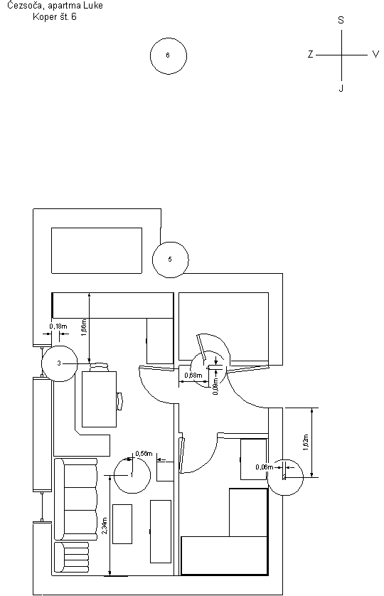 Apartmaja se nahajata v dveh sosednjih stavbah, ki sta postavljeni v središču vasice. Cerkev (zvonik 8P) je oddaljen približno 200 m v smeri SZ.